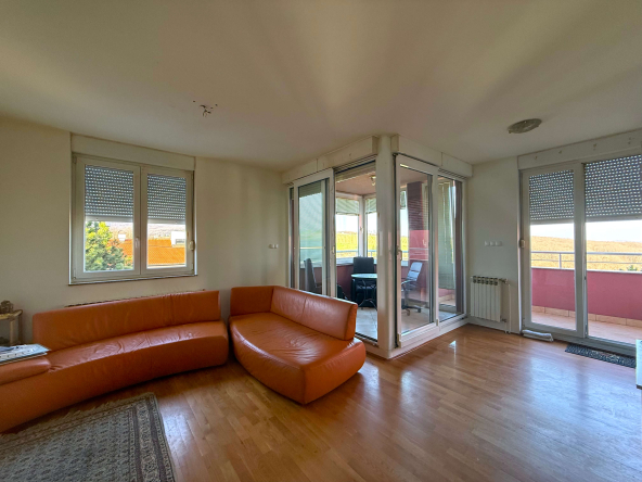 Stan se sastoji od hodnika, dnevnog boravka, kuhinje i blagovaonice, tri spavaće sobe, kupaonice, toaleta, natkriveni balkon/Loggia. Uz stan još ide jedno parkirno mjesto i spremište.